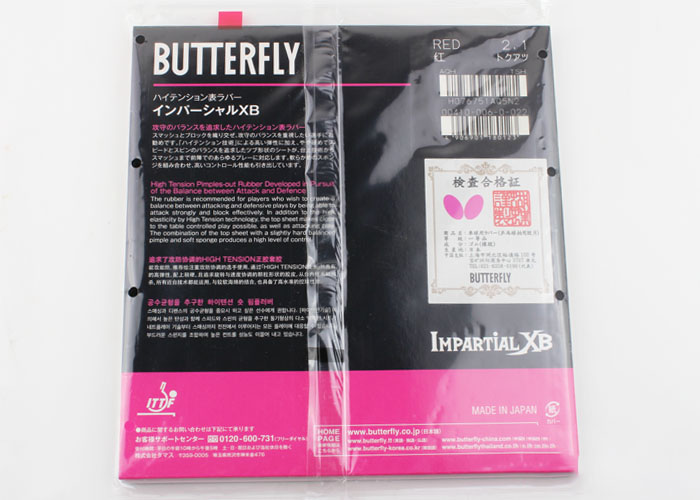 Butterfly蝴蝶Impartial XB 正膠套膠 00410